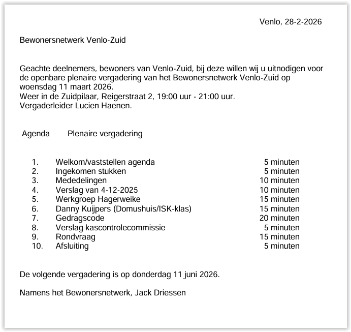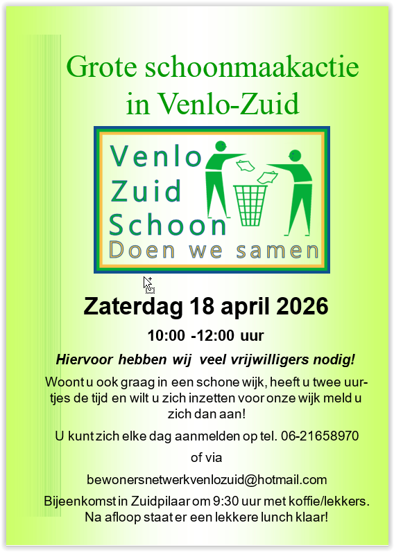 U kunt ons mailen op bewonersnetwerkvenlozuid@hotmail.com en ons volgen via facebook.